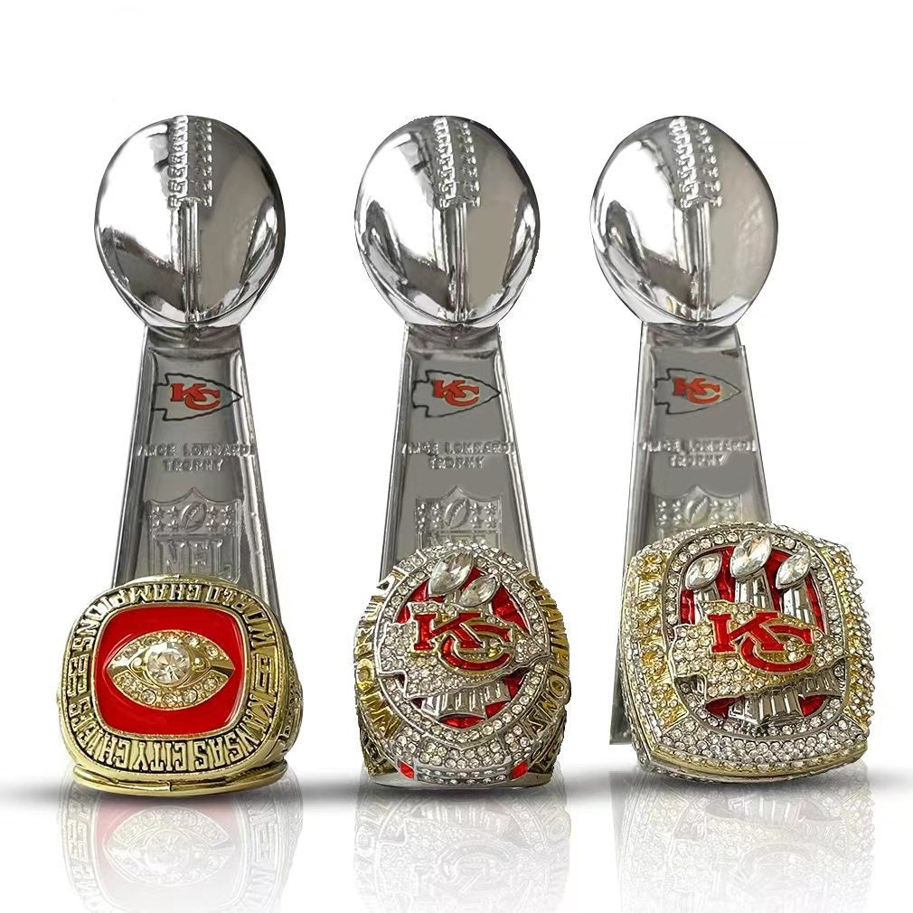 Kansas City Chiefs All Super Bowl Championship Ring & Trophy Set– 1970, 2020 & 2023  Winners Replica Collection