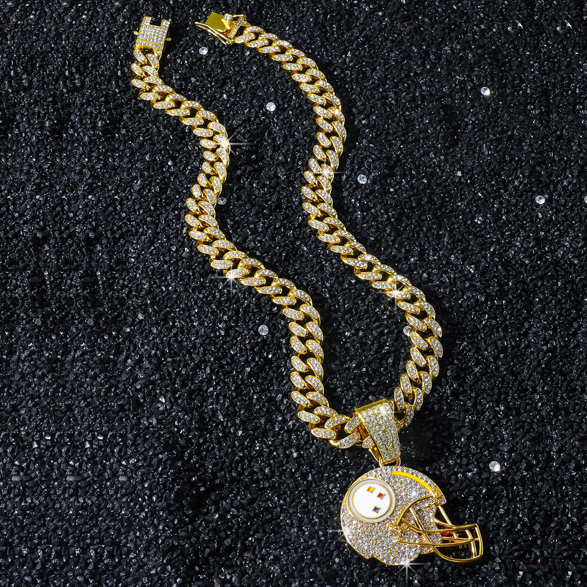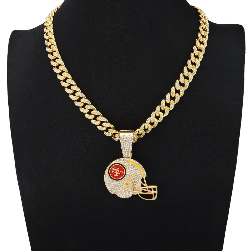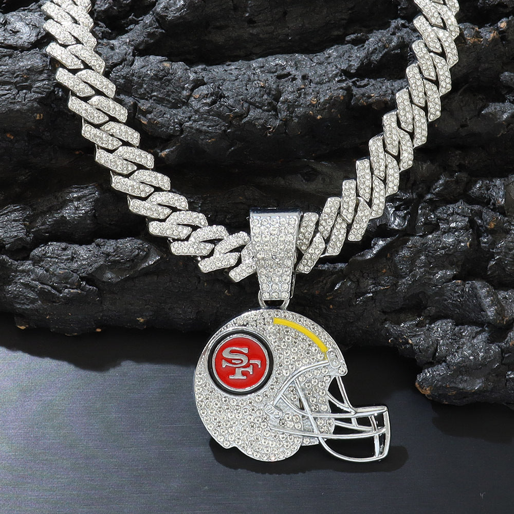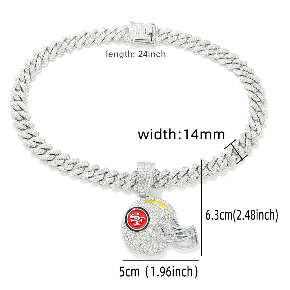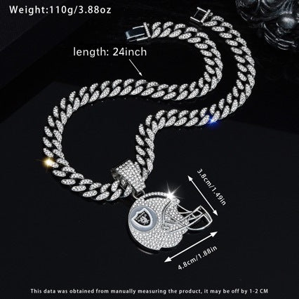Sports Mini Helmet Pendant Necklace with Iced Out Cuban Chains for Football Fans Christmas Gifts
